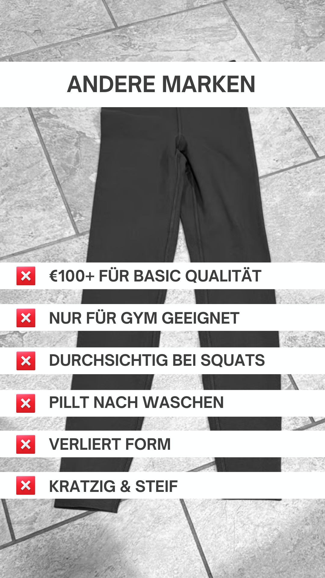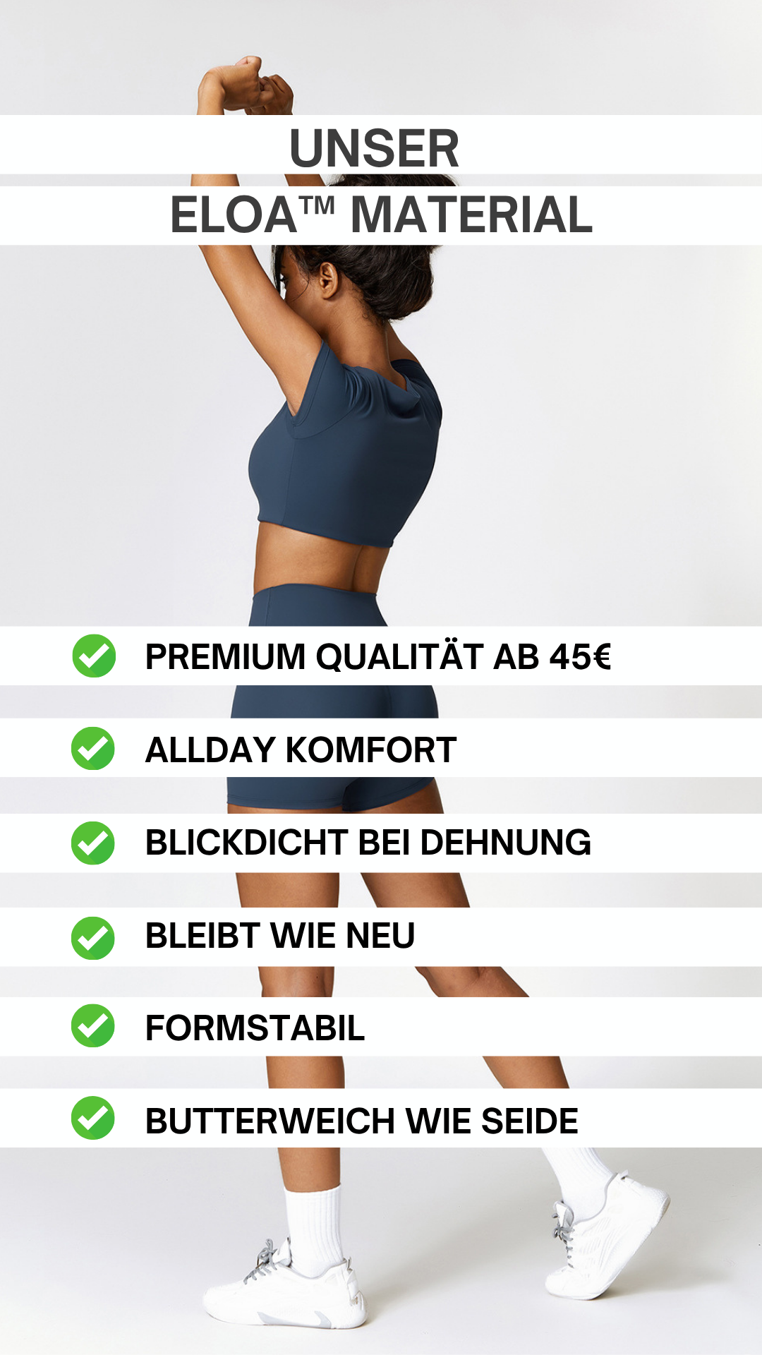 Schluss mit durchsichtigen Leggings, kratzigen Stoffen und überteuerten Preisen. Unser ELOA™ Material bietet alles was du brauchst: butterweich, blickdicht, formstabil - und das für die Hälfte des Preises anderer Premium-Brands.